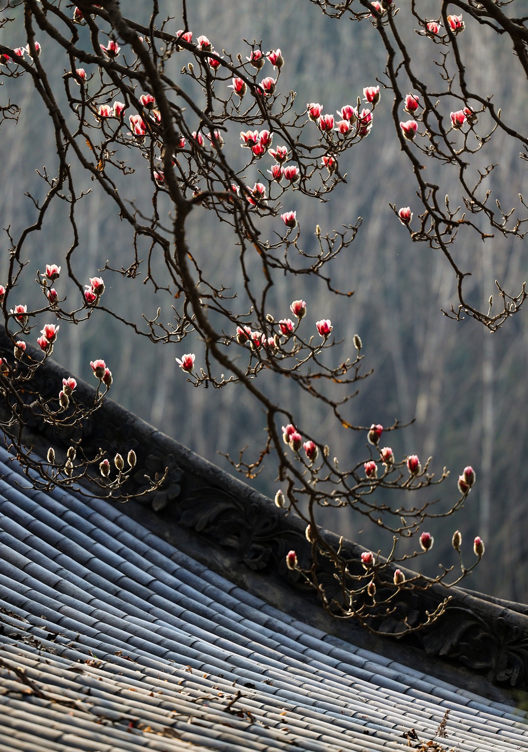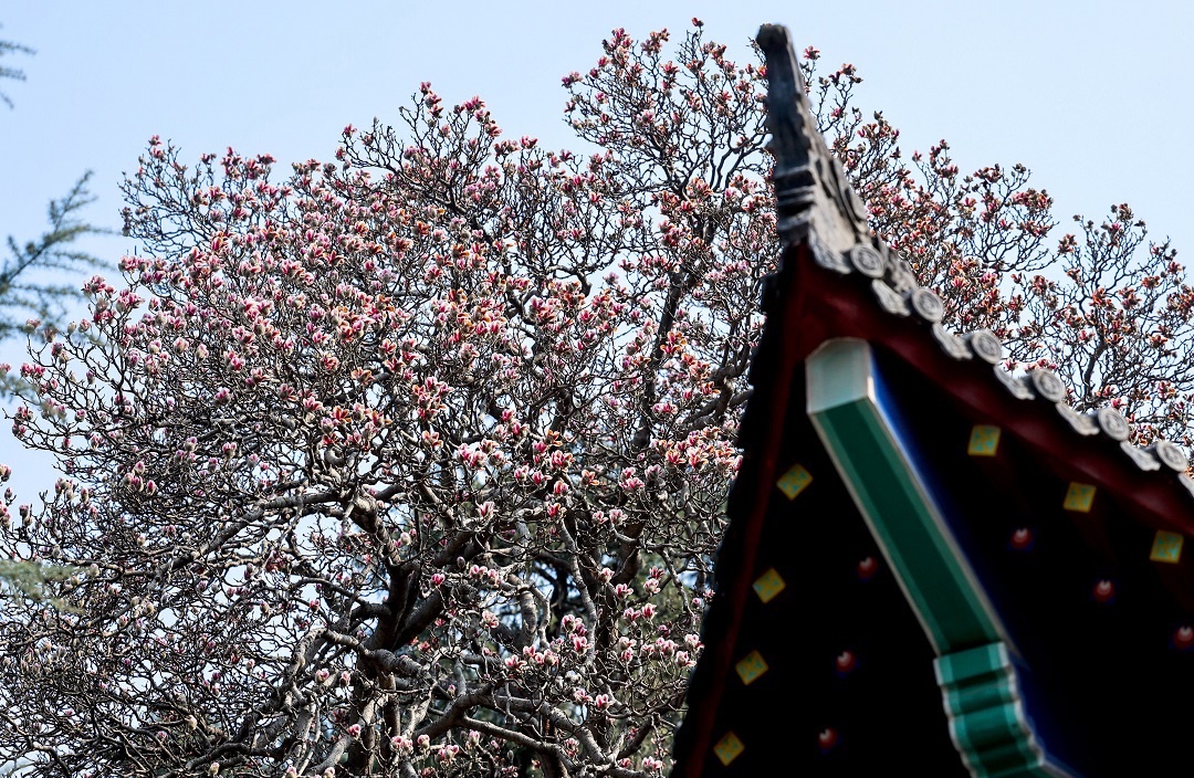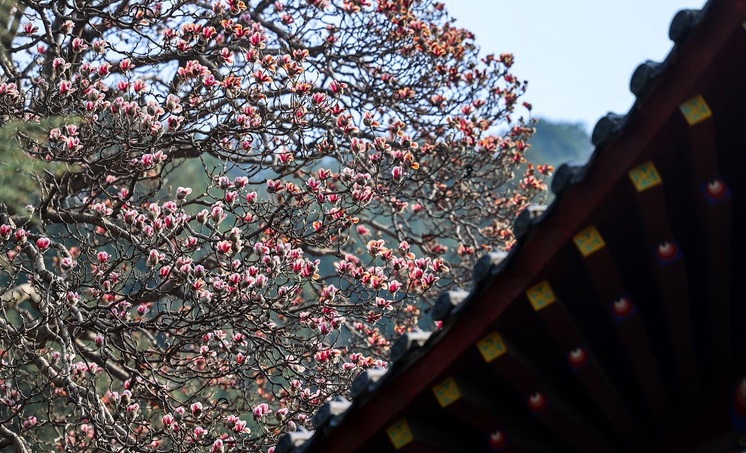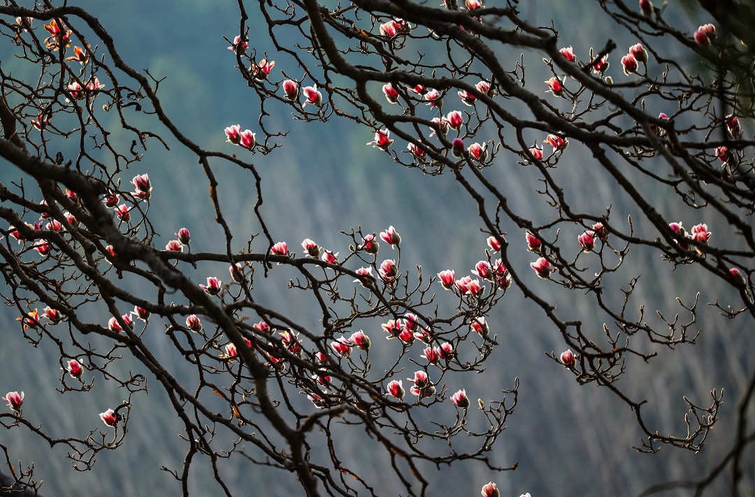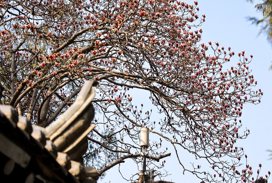 3月15日,位于秦嶺終南山下南五臺的兩株千年古玉蘭優(yōu)雅綻放,粉色花朵綴滿枝頭,清香陣陣,沁人心脾,為古城西安的春天增添了一道亮麗的風景。