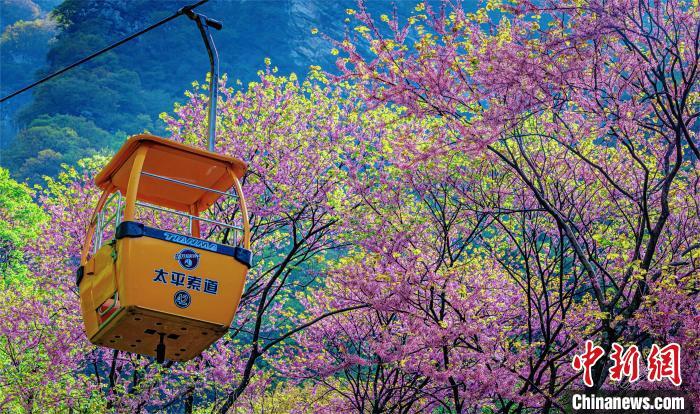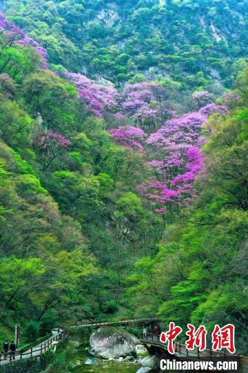 4月11日,不少游客赴秦嶺深處賞花踏春。太平國家森林公園供圖